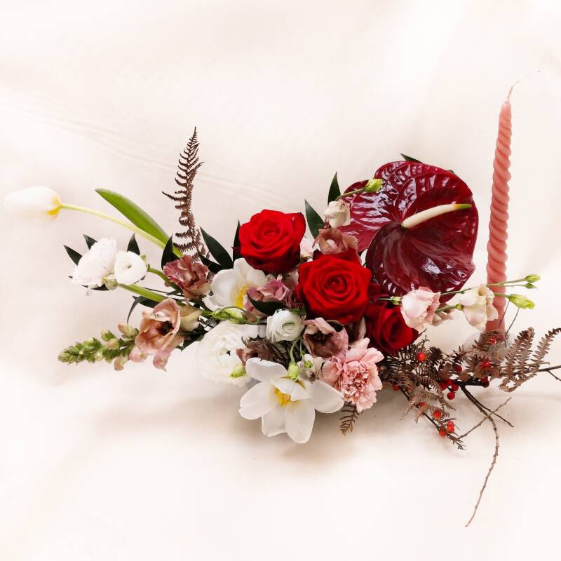 1/ Tafelbloemstuk gemaakt door BONT bloemen in een keramieken kommetje van TM keramiek. Leuk extraatje: Het kommetje mag je uiteraard houden en toevoegen aan je servies als ontbijtkom of soepkom.